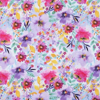 Drape yourself in the magnificent colors of spring any time of the year using our Bright Watercolor Floral Cotton Calico Fabric. This soft and single-sided fabric has a white background with a bright floral pattern on it. The flowers are rendered in a range of watercolors, giving them a distinctly delicate look. Roll it out and cut it to size for dresses, bandanas, and other apparel!