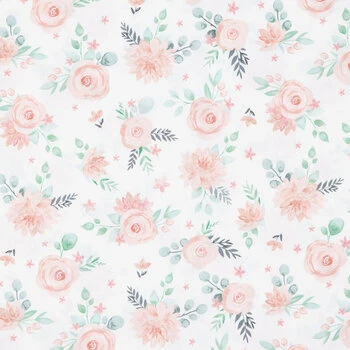 Sew something delicate and beautiful using this Gracie Floral Cotton Calico Fabric. This white fabric has soft pink roses and other flowers going across it. In addition to light green stems and leaves, the flowers on this material will look great without being too loud! Use it to create accessories and wearables you’ll want to show off all season long.