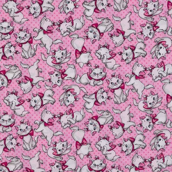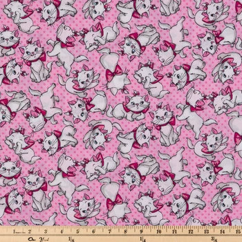 Everybody wants to be a cat! With a pink polka-dot background and many depictions of Marie, the cute kitten from TheΒ Aristocats, Many Faces Of Marie Cotton Calico Fabric is the purrr-fect way to start for an adorable creation. Turn it into darling dresses, accessories, pillows, and so much more!