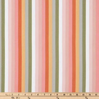 Bring retro vibes to your latest sewing project with our Muted Multi Striped Cotton Calico Fabric! This soft, woven fabric boasts a pattern of muted colors including pink, orange, gold, and green. Let its sunny, southwestern color scheme enhance your latest wearables and accessories!