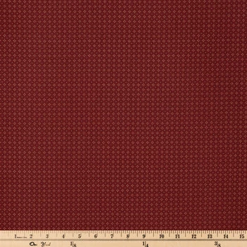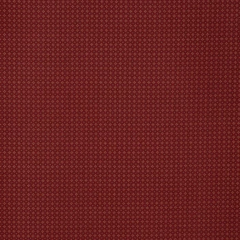 Red Mini Floral Cotton Calico Fabric offers a dark, rustic red background with a tiny floral motif on top in beige and black colors. The pattern alternates in rows between beige being in the middle with black petals and black being in the middle with beige petals.
