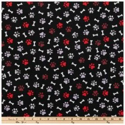 Cheap π Black & Red Plaid Paw Prints Cotton Calico Fabric β¨