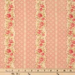 Hot Sale π Pink & Cream Floral Striped Cotton Calico Fabric π