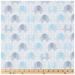 Best Pirce π Gray & Blue Plaid Elephants Cotton Calico Fabric π