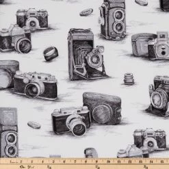 Best Pirce β¨ White & Black Antique Cameras Cotton Calico Fabric π