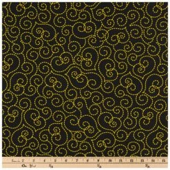 Promo β€οΈ Black & Yellow Swirls Cotton Calico Fabric π₯