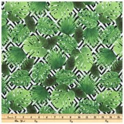 Best Pirce π Tropical Leaves On Geometric Cotton Calico Fabric π