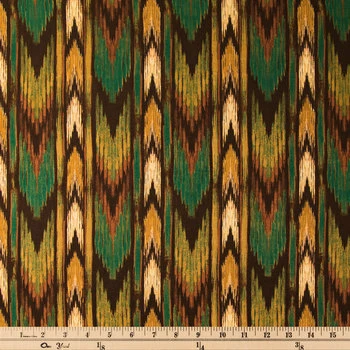 Sew together pieces with stunning colors, patterns, and style! Southwest Cotton Calico Fabric boasts a lovely ikat-chevron design with a gorgeous, earthy palette of colors including teal-green, dark brown, rust brown, golden brown, and cream-brown colors. Use it to make eye-catching pillows, blankets, placemats, table runners, fashion apparel, and more!