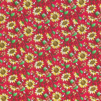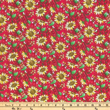 Best deal π Sunflowers On Red Cotton Calico Fabric π₯