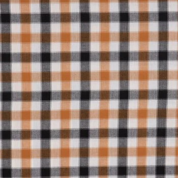 Sew farmhouse worthy items cut from Tobacco Plaid Cotton Calico Fabric. This neutral tone fabric has a black, brown, and white bold plaid print. Use it to make quilts, accessories, and more!